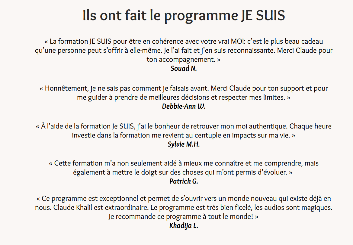 Écrivez-moi à claude@claudekhalil.com et je prendrai le temps de vous répondre directement. Vérifiez toujours vos pourriels si vous ne recevez rien dans votre boîte de réception dans les 24h ouvrables suivant votre courriel.
